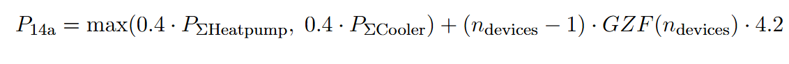Wenn die Summe der Netzanschlussleistung von Wärmepumpen oder Kühlgeräten größer als 11 kW ist, verwenden wir die folgende Formel: